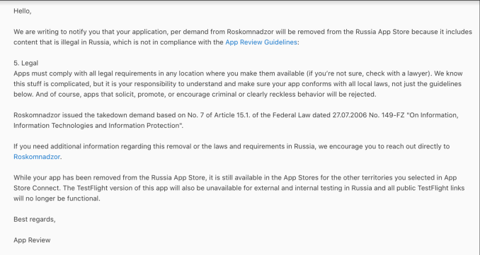 The crux of the letter indicated that the VPN applications contravened Russian law.