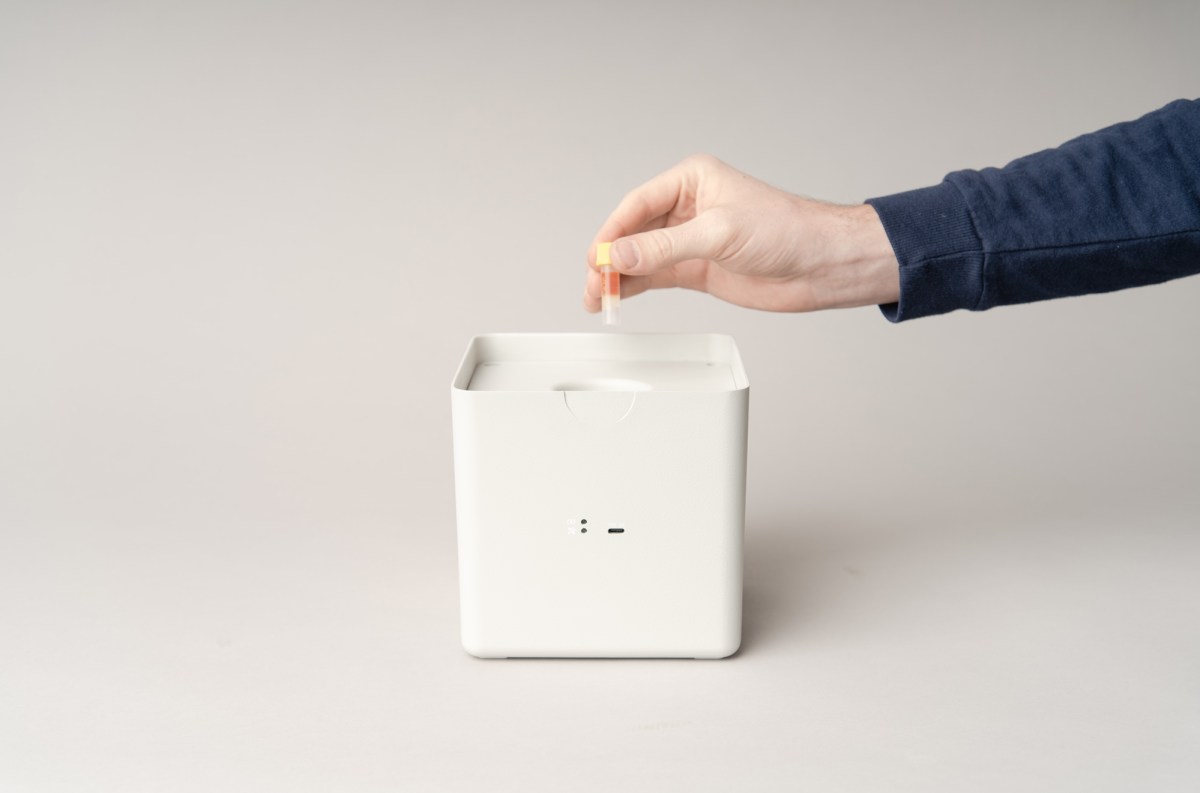 This innovative device, resembling a compact white plastic cube, can securely hold up to four vials, is powered by a USB-C charged lithium-ion battery running a solid-state heat pump for cooling or heating, effectively maintaining a stable 3 degrees C (37.4 degrees F) for over 56 hours. Enhanced with thermometers, accelerometers, GPS for location tracking, and cellular connectivity, it ensures the integrity and continuous monitoring of its contents.