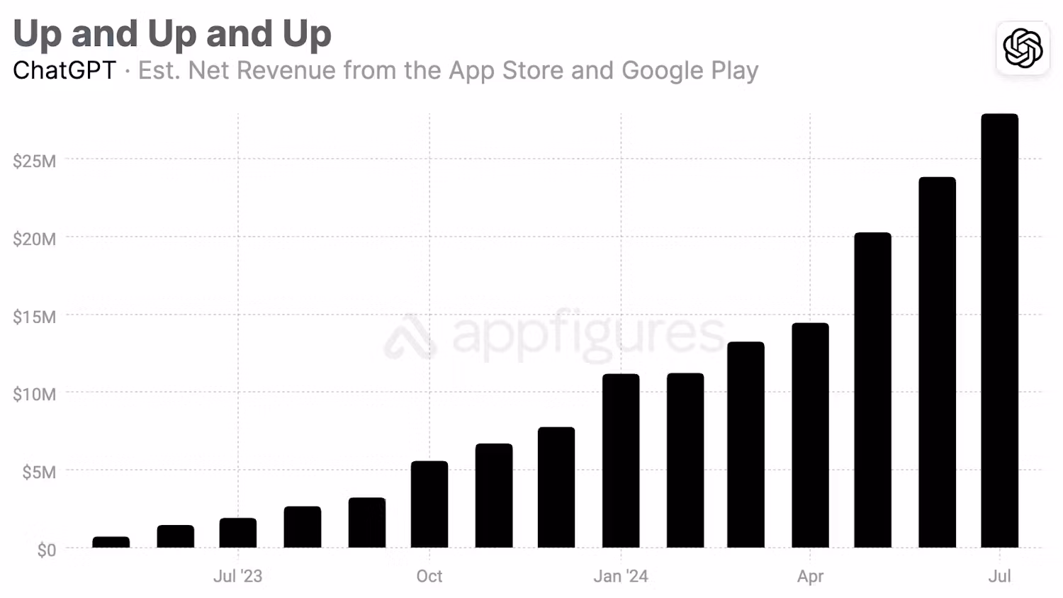 Appfigures estimates that the revenue generated in July contributed to ChatGPT securing 2 million additional paying subscribers, setting another record for the app.