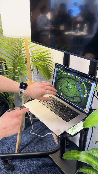 Doublepoint’s CTO, Jamin Hu, demonstrated the technology by placing an Apple Watch on my right wrist and instructing me to point at a lamp across the room. Upon doing so, the lamp lit up. When I tapped my thumb and index finger, the light turned off, and when I tilted my palm upwards, the brightness intensified.