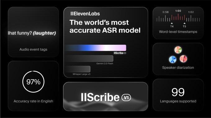 The Scribe model also features advanced speaker diarization to identify individual speakers, word-level timestamps for precise subtitles, and auto-tagging of sound events such as audience laughter. The startup is offering a means for clients to transcribe video content directly, allowing for captions or subtitles to be added in its studio.
