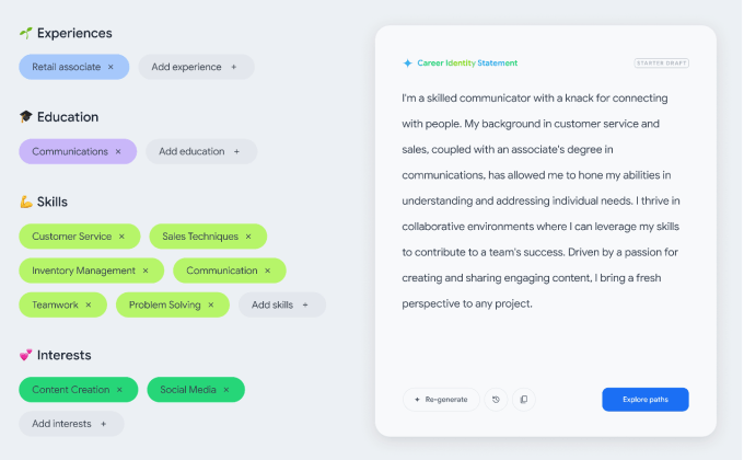 With Career Dreamer, users can harness AI to create a career identity statement by choosing from their current and past roles, skills, experiences, education, and interests. Google emphasizes that this statement can be included in resumes or utilized as a reference for discussing your qualifications during interviews.