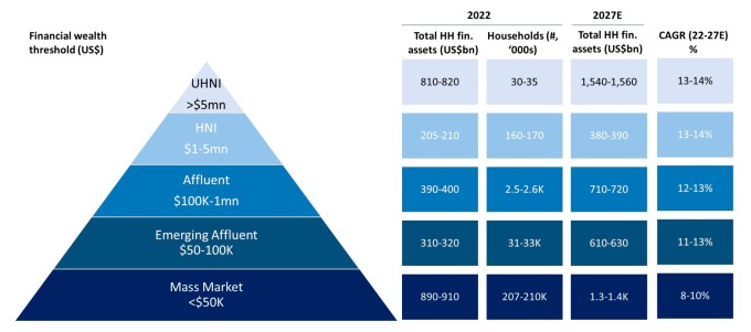 The demographic of affluent individuals in India is set for rapid growth. Projections by UBS suggest that the number of people with annual incomes over $10,000 will more than double in the next five years, presenting a lucrative opportunity for financial services platforms focused on this segment.