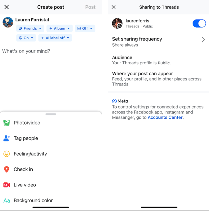 Facebook initiated the testing of Threads cross-posting in late February. Users can enable a Threads sharing feature when crafting a post on Facebook, selecting the Threads icon among options like “Only Me” or “Add an Album” to toggle it on or off.