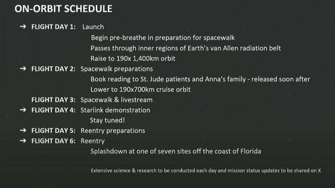 Furthermore, the mission will evaluate the performance of Starlink’s laser-based communications in outer space and conduct a series of health-related experiments, especially focusing on the effects of Van Allen belt’s radiation on humans.