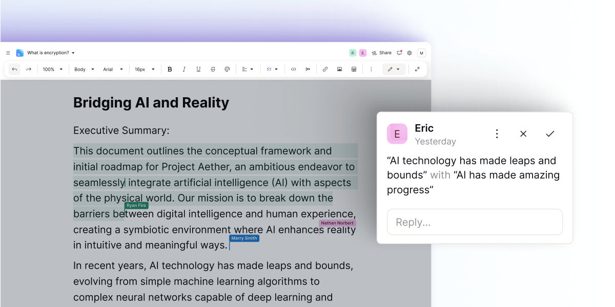 For collaboration, it permits users to comment, reply, and resolve feedback, view document collaborators in real-time with “collaborative cursors,” and facilitates sending invites for document collaboration. Invitations encourage recipient registration on Proton, potentially driving user base growth.