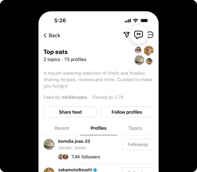 Threads also enables users to share their public feeds with others via a link or direct message by selecting “View Feed” from the Edit Feeds settings. Users can then post a preview of their custom feed using the quote icon and utilize the “Share Feed” button to distribute the feed to others.