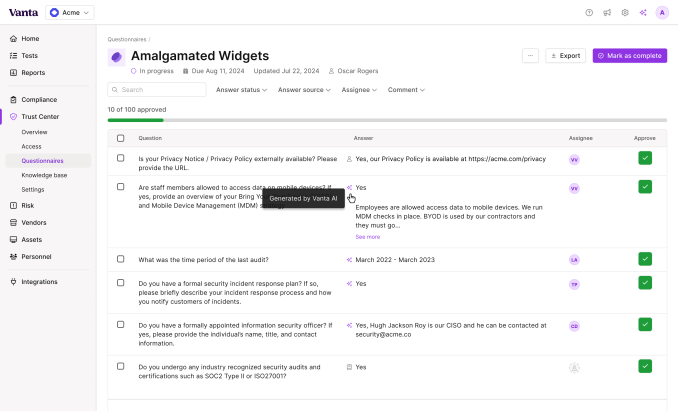 The recent unveiling of its questionnaire automation service epitomizes Vanta’s commitment to simplifying compliance and security review processes, showcasing a commendable efficiency wherein 80% of responses generated are instantaneously validated by reviewers.