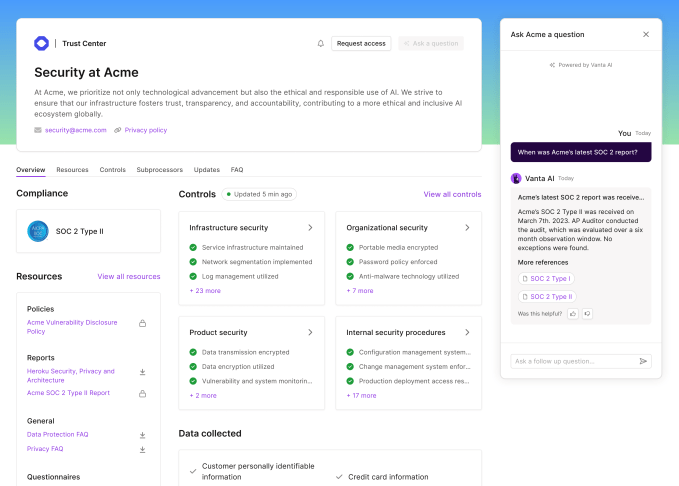 Venturing into AI, Vanta introduced its foremost AI-driven tools last year, with plans to amplify the utilization of expansive language models.
